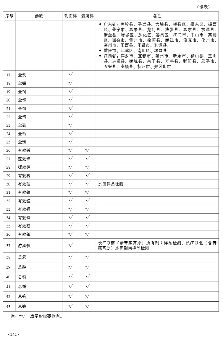 答:农业行业标准《土壤有效态锌、锰、铁、铜含量的测定二乙三胺五乙酸(DTPA)浸提法》(NY/T 890-2004)规定了采用二乙三胺五乙酸(DTPA)浸提剂提取土壤中有效态锌、锰、铁、铜,以原子吸收分光光度法或电感耦合等离子体发射光谱法加以定量测定的方法,该标准规定适用于pH>6的土壤。《土壤分析技术规范》(第二版)(中国农业出版社,2006)引用了该标准,并明确pH<6的土壤也可参照使用。经内业技术组专家研究确定,NY/T 890-2004标准适用于所有土壤有效态锌、锰、铁、铜含量的测定。