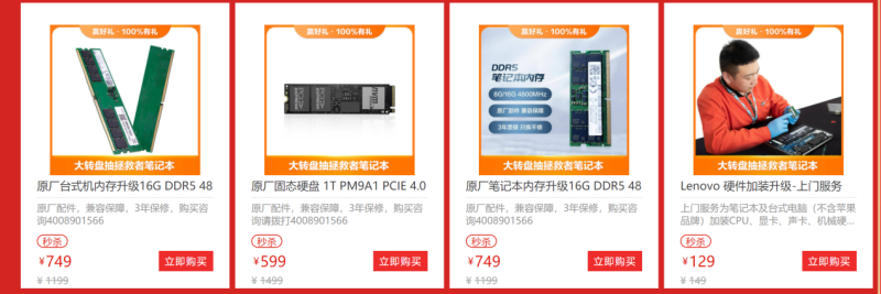 同时联想全网UIY产品也迎来各类优惠,还赠送到店加装服务,让用年轻人买得放心、父辈们用得省心。通过官网下单的电脑加装改配赠送“意外保”、“清洁保养换硅脂”服务66折优惠,这个618给电脑升级内存、硬盘实在太划算了。