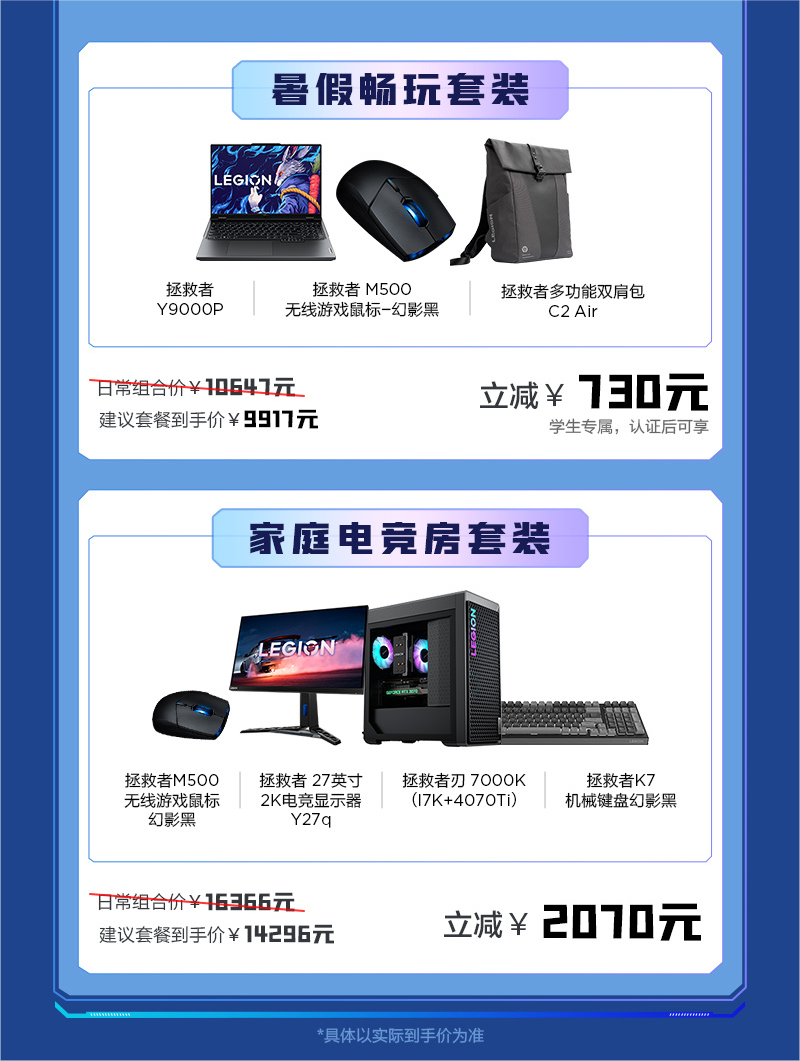 哪位刚高考完的大学生不想嗨玩一番、放飞自我呢,这就少不了联想的暑假畅玩套装,包含拯救者Y9000P笔记本电脑,游戏操控利器M500无线游戏鼠标,以及多功能双肩包C2 Air。这一套装618期间直降730元,仅需9917元就能入手,是个不可多得的入手时机。
