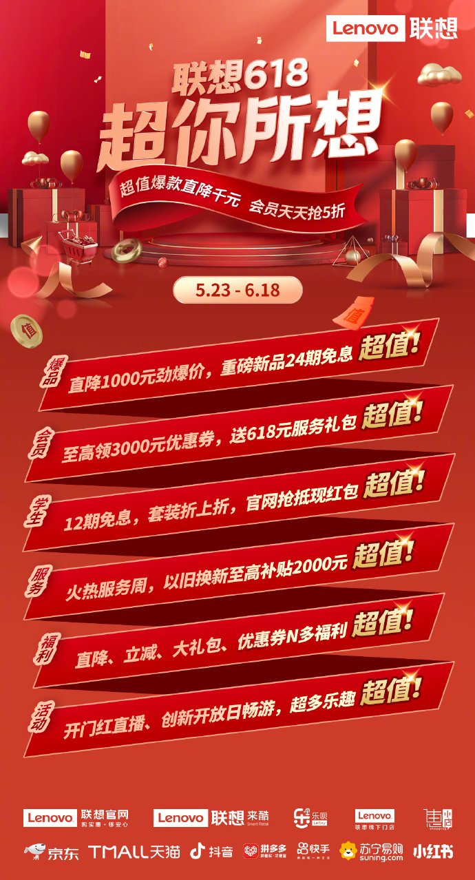 联想今年的618活动相当的给力,覆盖了用户各维度的需求,可以挑选出够实用、够用心的父亲节礼物,也可以为准大学生们挑选新潮又炫酷的装备。还有安全贴心的服务,让购物实惠又省心!