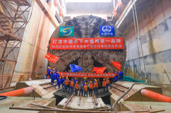 研发团队为该设备融入了众多创新技术,通过前装式常压滚刀技术和刀具状态实时监测系统,大大提高了滚刀的使用寿命,避免人工频繁抽检刀具,并配置大流量泥浆循环系统,确保盾构机在复合地层中快速掘进;依托中铁隧道局“智慧盾构大数据平台”,利用大数据系统综合分析全工序施工数据,实现对掘进参数实时智能监控、自动预警,确保了超大直径盾构水下高效、连续、安全掘进;高水准建设泥水处理中心,科学优化泥水管路设计,实现了管内泥浆100%收集,达到了泥浆零泄漏、零污染的管控标准,兼顾了工程经济效益和环保效益,过程中实现单日最高掘进10米的海底大盾构日掘进全国纪录。