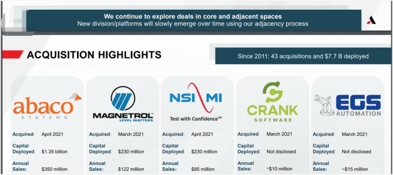 图2 阿美泰克连续并购 (Source:2021年年报)