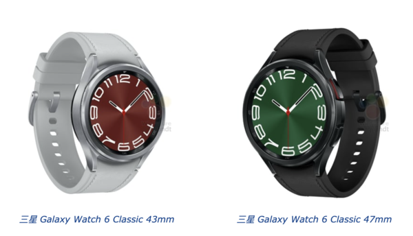 根据公布的图片来看,此次三星Galaxy Watch6系列共有两款产品,分别为三星Galaxy Watch 6和三星Galaxy Watch 6 Classic。其中三星Galaxy Watch 6拥有40mm以及44mm两种版本,并且通过全新的设计,整体看上去更加简洁。