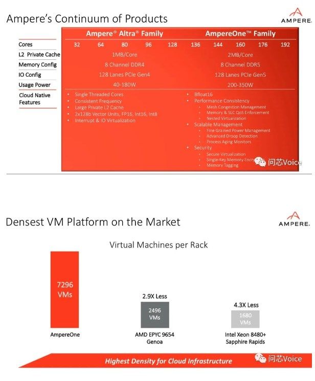 Jeff Wittich指出,AmpereOne能够为云工作负载提供更高的性能、更高的可扩展性以及更高的密度,也是第一款基于Ampere新自研核的产品,由Ampere自有IP全新打造,拥有多达192个单线程Ampere核。