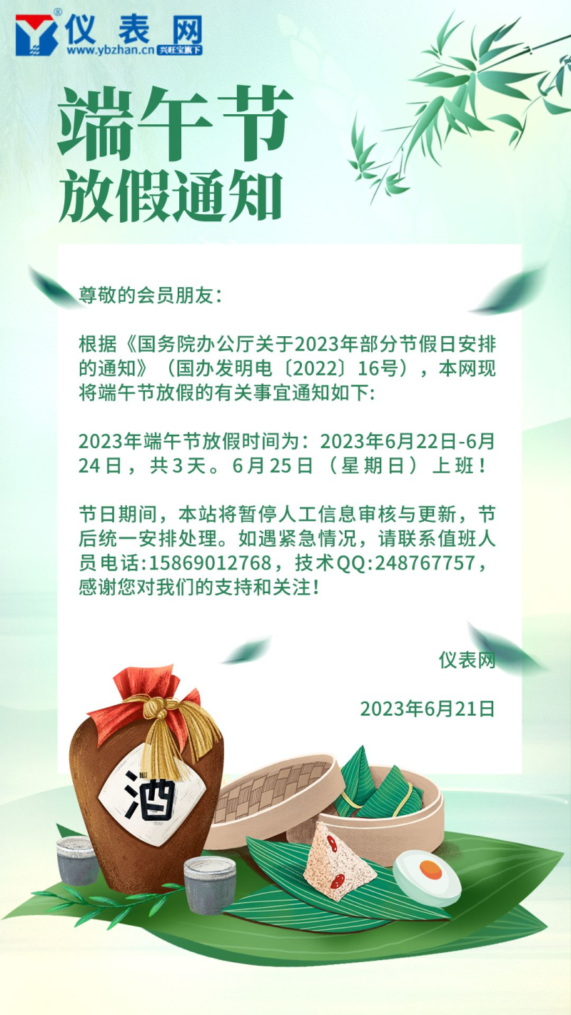 本文标题:仪表网2023年端午节放假通知