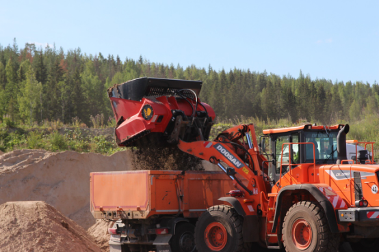一方面,ALLU筛分破碎铲斗适用材料种类多,如表层土、黑土和挖掘出的渣土、污染土、粘土、泥炭土、树皮、生物垃圾、建筑拆迁垃圾、沥青、玻璃、煤炭等,通过筛分分离出可用净土,土质更能够满足项目资源化利用要求;另一方面,就地处理回收可最大程度帮助业主降低运输成本,并避免过程中造成扬尘等二次污染,兼具性价比与环保效益。