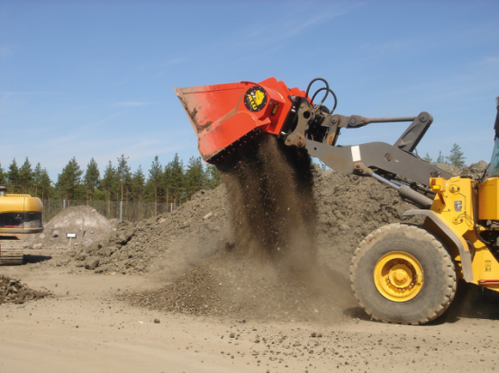 ①更灵活。ALLU筛分破碎铲斗可以在各种场合下使用,如建筑工地、矿山、港口等,能够应付土壤、沙子、岩石、玻璃、混凝土等不同类型材料,按照不同尺寸进行筛选和分类,并根据需要进行粉碎、混合等,便于后续回收利用工作进行。