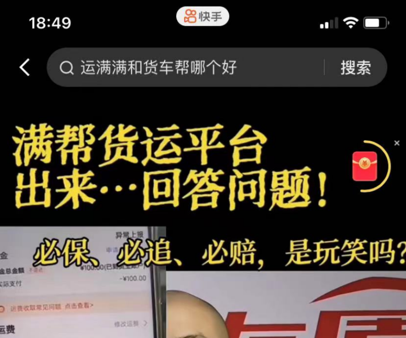 一家卡友联盟“卡友盾”在快手上爆料,有司机在平台上接单并完成了标注有“全能保障”、“满帮优选”的订单,运费为14050元,并支付技术服务费199元。但是最终,对方通过种种手段只兑付了9200元。因此在该视频中,爆料者直接质疑该笔线上订单是“专业切货”的二次发送货源,也就是扰乱市场秩序者通过平台“倒买倒卖”黑心赚取差价。在评论区里,有人质疑:“既然司机向平台缴纳了技术服务费,那平台是不是也应该审核订单的真实性和可靠性?”