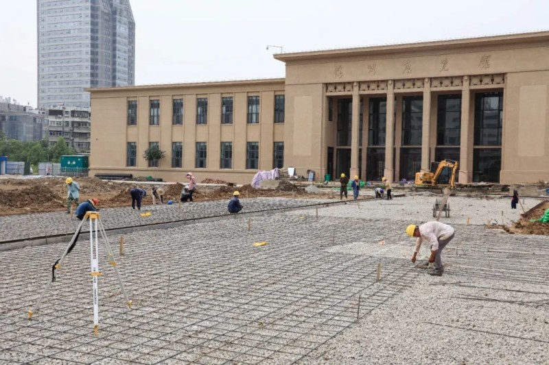 6月23日上午,记者来到建设中的展览馆地下停车场,施工人员正顶着烈日进行顶面铺装施工。
