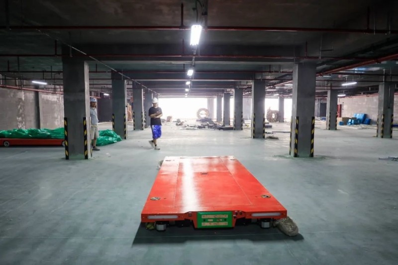 2022年7月16日,位于淮海西路与立达路交叉口西北方向的我市首个智能停车服务机器人停车场——展览馆地下停车场正式开工。截至目前,这座计划设置236个停车位的地下停车场建设已经接近尾声,预计7月下旬具备运营条件,8月份可以实现竣工运营。其中,核心硬件能原地调头的AGV智能停车服务机器人已经进驻。顶面铺装正在进行