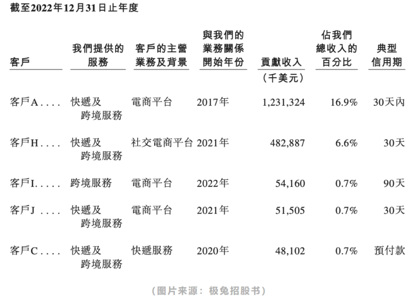 极兔的招股书中提到,一家电商平台A公司连续3年都是极兔最大的客户,在2022年,客户A为极兔贡献了12.3亿美元的收入,占总收入的16.9%。虽然没有明说,业内也都知道,这家A客户正是拼多多。