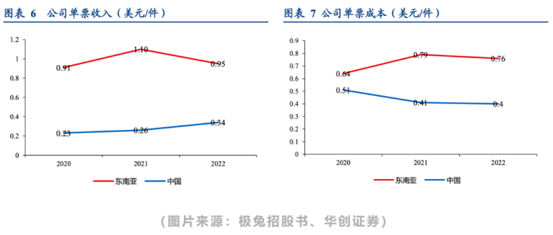 在极兔招股书中披露,按2022年包裹量计算,极兔在东南亚业务量排名第一,业务量为超25亿件,市场份额达22.5%,而2020年为11亿件,2020-2023年复合增长率为47.6%。在中国市场,2022年极兔业务量超120亿件,2020年为20亿件,2020-2023年复合增长率140.2%,根据弗若斯特沙利文数据,极兔市场份额已达10.9%,成为了中国排名第六的快递公司,甚至已经超过了顺丰。