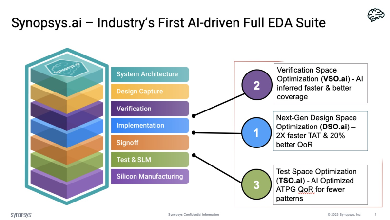 随着DSO.ai在越来越多的AI芯片设计开发中得到实践,新思科技在今年四月进一步推出了全球首个全栈式AI驱动型EDA解决方案Synopsys.ai,让开发者第一次从系统架构到设计和制造、在芯片开发的每一个阶段都可以采用AI技术,并从云端访问这些解决方案,最终达到降本增效,并缩短产品开发周期的优异成果。