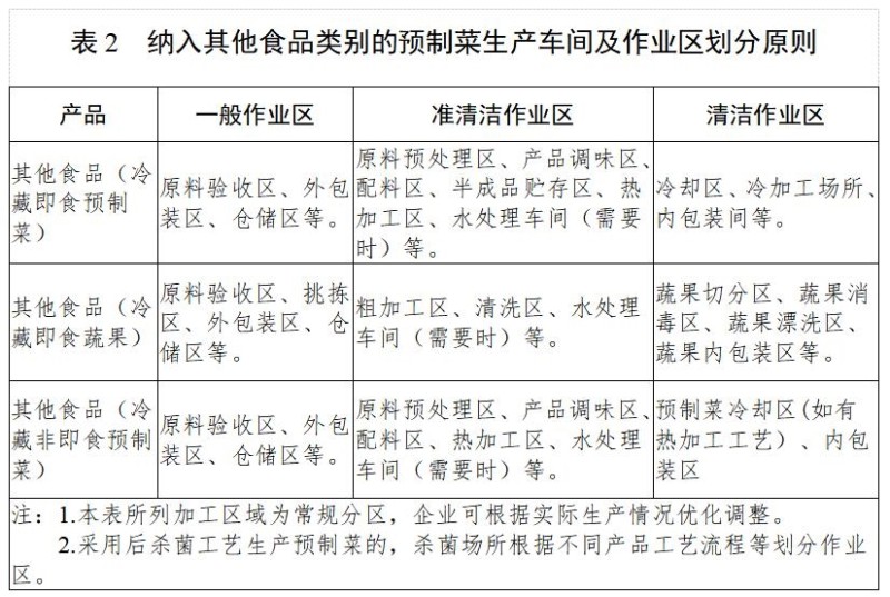 《方案》对预制菜的生产场所做了严格规定,生产场所划分为一般作业区、准清洁作业区、清洁作业区。第十四条还规定冷藏即食预制菜内包装间设计应参照《医药工业洁净厂房设计标准》(GB 50457)要求,洁净级别应不低于D级,或《食品工业洁净用房建筑技术规范》(GB 50687),洁净级别不低于Ⅲ级,生产状态下企业每月至少对清洁作业区沉降菌按照标准要求监测1次。鼓励企业清洁作业区达到更高洁净级别。