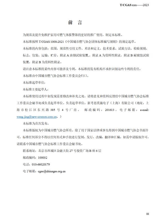 【仪表网 行业标准】根据中国城市燃气协会《关于下达2021年中国城市燃气协会团体标准编制计划的通知》(中燃协标〔2021〕30号)的要求,中国城市燃气协会团体标准《免维护家用可燃气体报警器》已完成征求意见稿,现进行上网公开征求意见。