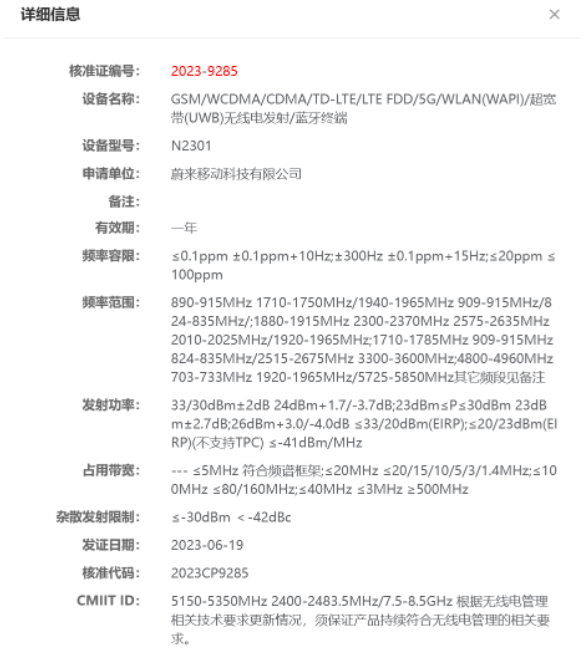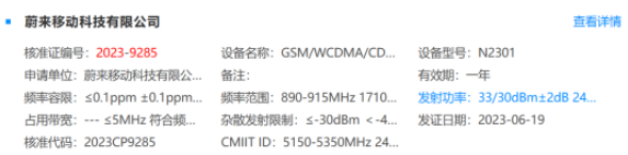 近日,工信部政务服务平台网站显示,蔚来手机已通过了工信部无线电核准,申请单位为蔚来移动科技有限公司,设备型号为N2301。