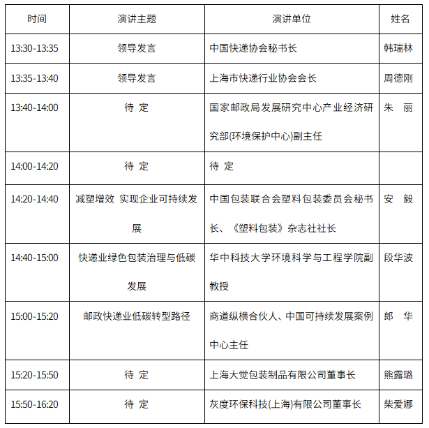 主办单位:中国快递协会绿色环保专业委员会、上海市快递行业协会