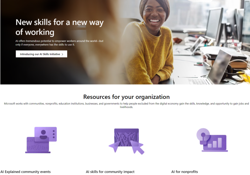 首先,微软慈善基金会与data.org、微软“AI向善”实验室和GitHub合作推出一个生成式AI挑战补助项目。这是一项开放式资助项目,旨在探索、开发和推动非营利组织、社会企业、研究机构如何培训和授权员工使用生成式人工智能。