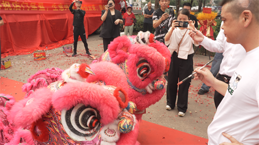 舞狮为交机仪式献上热烈祝贺