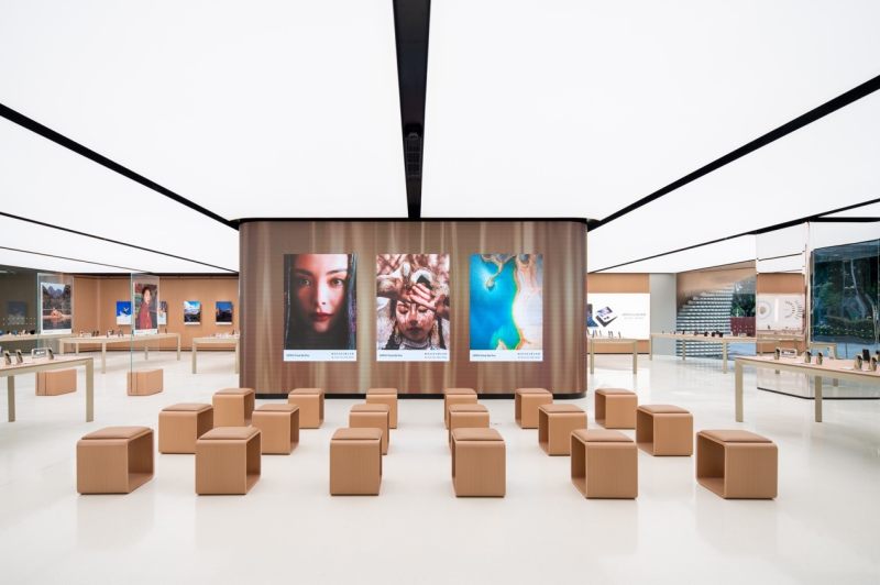 在功能设计上,广州旗舰店将产品展示与生活方式相结合,除产品展示区域外,还增加了多功能区和服务区域。多功能区设置了超影像橱窗展示,让用户的艺术创意融入旗舰店;同时,还为消费者提供共创交流空间,例如:摄影师、艺术家交流共创课堂、手绘DIY等丰富的交流体验。