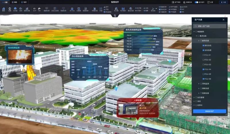 以大型商场项目的数字孪生平台为例,前者可能会通过锚点、摄像头等细化商场的场景,甚至可以模拟出清晨傍晚不同时段的光线效果以及内部门店的陈列,从而展示不同条件下的运营场景。但后者则是更加关注建筑管理,例如能耗优化、建筑资产管理等,其善于利用数字孪生体的性能参数、属性数据以及物联网终端所采集的数据相结合,来辅助管理者更好的优化工程实施与建筑运行。