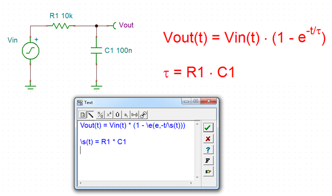 TINA的文本编辑功能应该是众多电路仿真软件中最好的,例如下图中的公式并不是复制粘贴上去的,而是在TINA中编辑的。