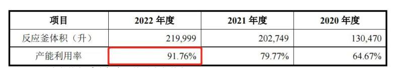 实际上,自从皓天科技的白银生产基地从2020年6月开始陆续转固投产之后,可使用的反应釜体积逐步增加,已从2020年的13.05万升,提升至2022年的22.00万升。与此同时,报告期内,皓天科技的产能利用率也日趋饱和,分别为64.67%、79.77%、91.76%,
