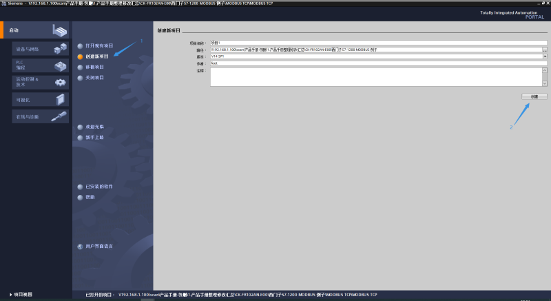 1、打开博图V14,新建工程。