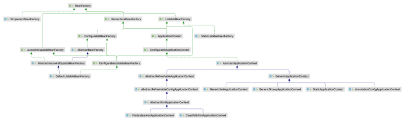 很多小伙伴刚开始接触 Spring 的时候,都会用到一个对象 ClassPathXmlApplicationContext,这其实就是 BeanFactory 的一个子类。我们来看下 BeanFactory 的继承图: