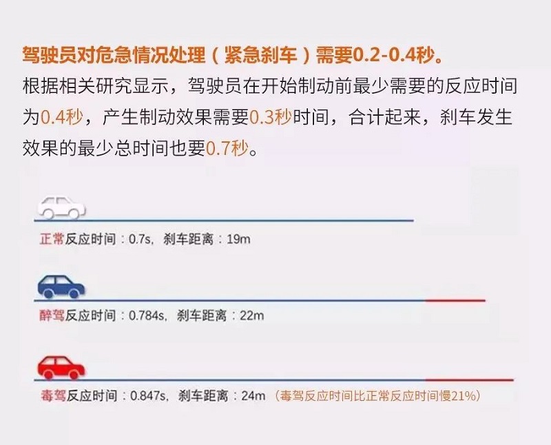 正常、醉驾、毒驾制动反应时间对比