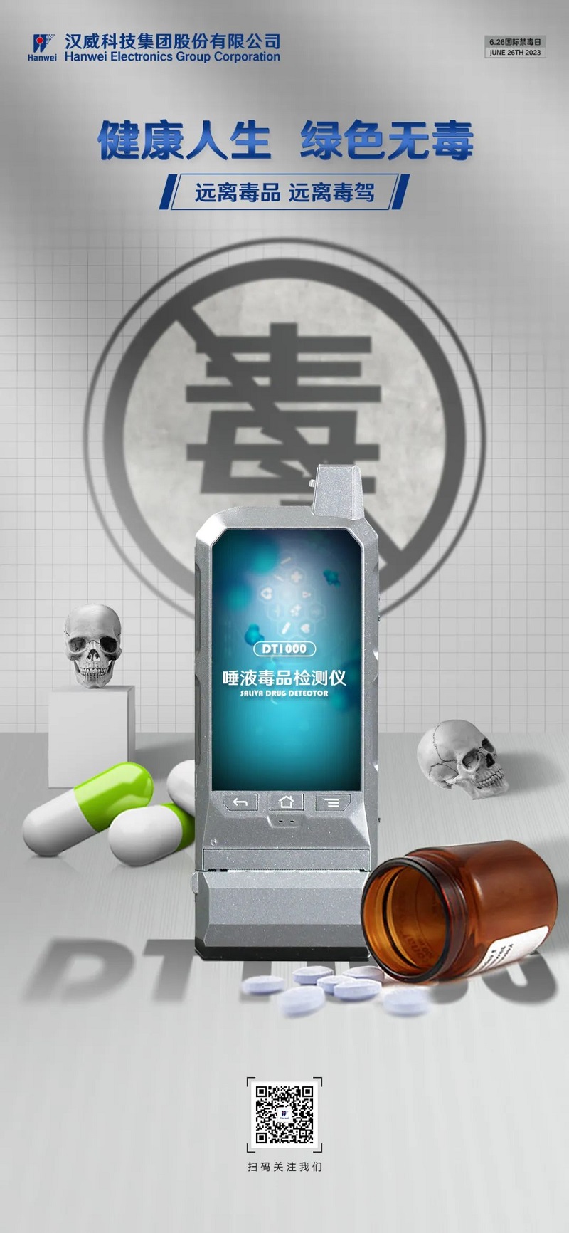 “健康人生,绿色无毒”,我们在呼吁远离毒品,远离毒驾的同时,也要意识到禁毒事业的任重道远。汉威科技集团将凭借过硬的传感技术与毒检设备,为我国乃至国际禁毒事业的发展贡献力量。