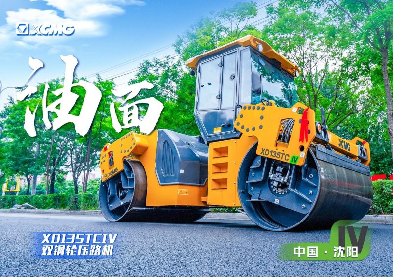 摊铺工作结束后,由徐工XD135TCIV进行压实。这款13吨双钢轮压路机作为油面的当红明星,采用双频双幅振动系统,前后轮可独立振动;同时,其内置的软起软停功能使压路机起步、停车均平稳进行,避免路面、拥包,可进一步提升路面压实质量,在提高路面平整度方面效果拔群。