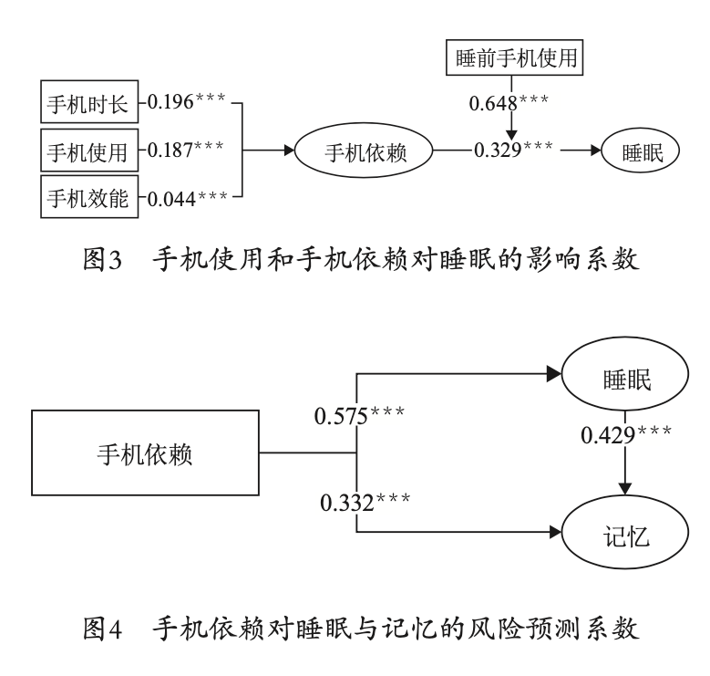 其次,本文分别考察了手机使用、手机依赖与睡眠和记忆之间的关系,建立了青少年手机依赖对睡眠和记忆风险的整合模型,拓展了此前研究主要基于成年人或大学生样本的发现[31],增加了手机依赖对青少年睡眠质量和日常记忆负面风险的经验证据。