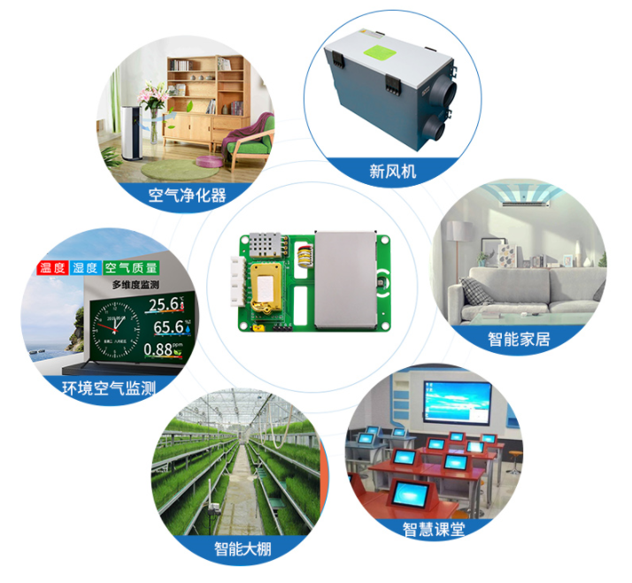 AEM1000可满足多样化室内环境空气监测的应用场景,例如办公楼宇、学校教室、图书馆、酒店商场等室内场所的新风机、空调、空气净化器系列智能家电产品中。