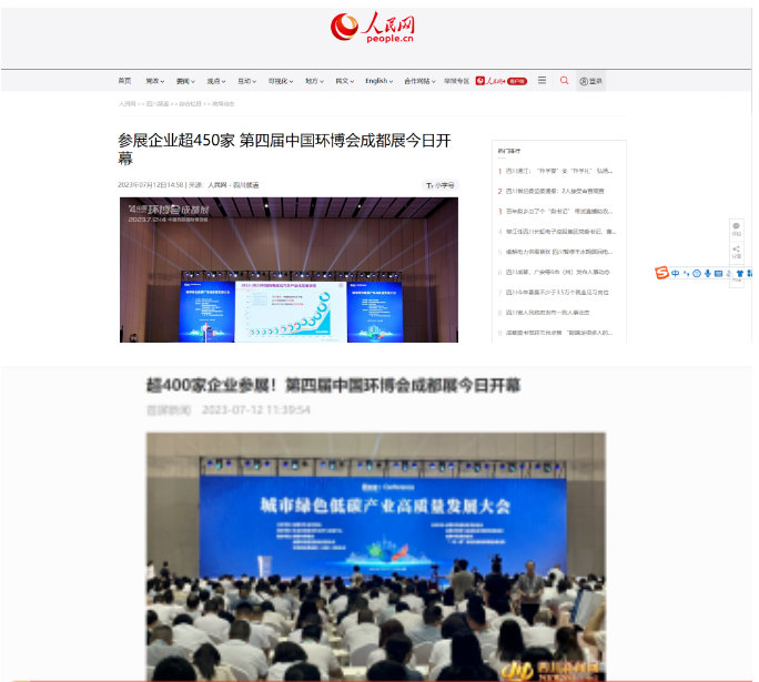 在展会声量方面,人民网、新华网、四川新闻、每日经济新闻、中国经济时报等35家大众媒体单位对本届展会进行了报导,媒体平台上的相关内容推送量高达上千条。同时在环保行业新媒体矩阵的发酵助力下,展会话题总曝光量超过100万+。