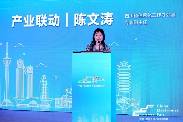 大会现场,中国工程院院士张宏科,中国电子信息产业集团科技委副主任郭昭平,四川省信息化工作办公室专职副主任陈文涛,重庆市经济和信息化委员会二级巡视员廖冰,成都市人民政府副秘书长张涛,四川省推进成德眉资同城化发展领导小组办公室常务副主任、成都市发改委党组副书记尹宏,成都市经信局市新经济委党组成员、副局长蒲斌,国家发改委国土地区研究所原所长、中国国土经济学会理事长肖金成以及多位龙头企业代表共同出席开幕式。郭昭平、廖冰分别为开幕式致辞。