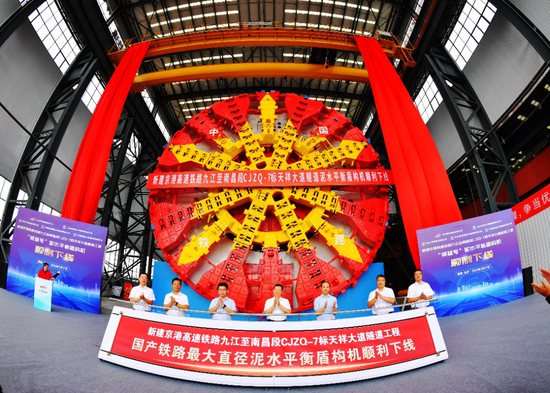 7月17日,由铁建重工和中铁十四局共同打造的超大直径高铁隧道盾构机“英雄号”在湖南长沙下线。“英雄号”整机长约134米,开挖直径达14.8米,是目前应用于国内350千米每小时最高时速、最大直径高铁隧道施工的盾构机,也是江西省首次采用的超大直径隧道盾构机。