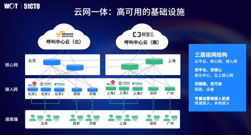 云网一体的业务承载网络。在客户联络场景中,像语音这种业务必须做到实时性和高可用。任何网络节点出现问题,软件就没用。因此,如何构建云网一体的业务承载网络是产品核心的架构问题之一。