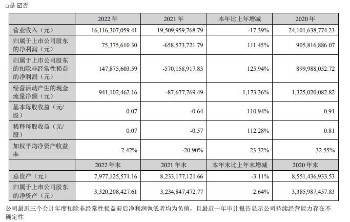 据今年4月底龙大美食发布的2022年年度报告显示,报告期内,龙大美食实现营业收161.16亿元,同比下降17.39%;实现归属于上市公司股东的净利润 7,537.56万元,较上年同期增长 111.45%;归属于上市公司股东的扣除非经常性损益的净利润1.48亿元,较上年同期增长125.94%。