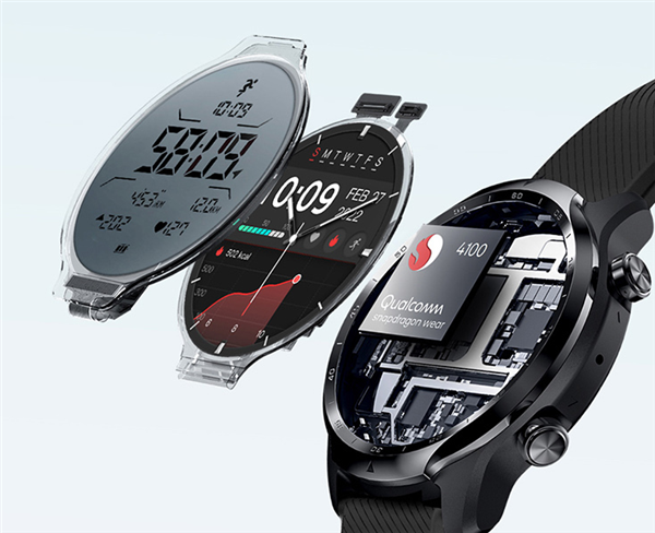 搭载高通骁龙4100旗舰芯片,运行Wear OS by Google操作系统。新一代双层屏2.0,1.39英寸AMOLED屏幕和FSTN液晶屏,两种模式,智能模式续航长达72小时,持久模式续航长达45天。