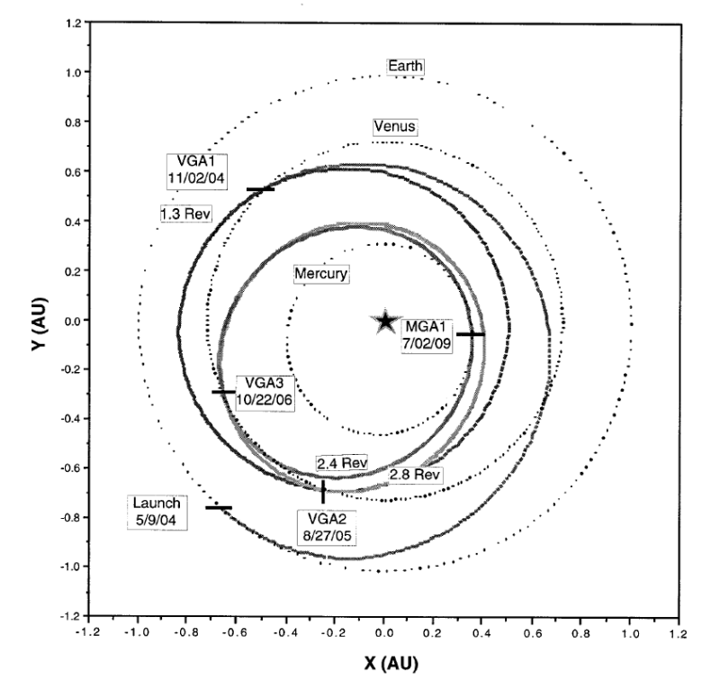 [3] Yen, C. L., “Ballistic Mercury Orbiter Mission via Venus and Mercury Gravity Assists,” AAS/AIAA Astrodynamics Specialist Conference, Paper AAS 85-346, Vail, CO, August 12-15, 1985.
