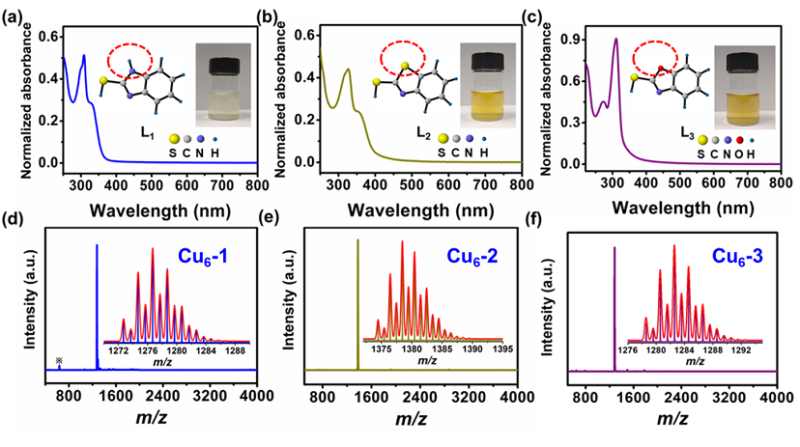 图1. 三种不同配体Cu6团簇的合成与表征