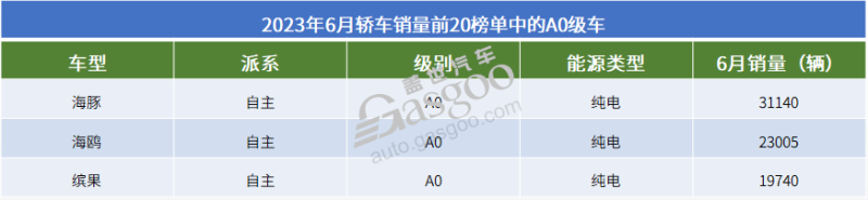 6月进入到轿车销量前20的三款A0级车型都是纯电产品。事实上,6月销量排名前5位的A0级车型,都是电动小车。曾经细分市场上的“王牌”燃油车型如飞度、POLO等,都已经泯然众人,飞度的月均销量还能维持在5000辆上下,POLO的月均销量已经不足2000辆。