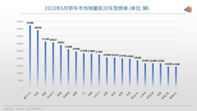 秦PLUS继续领跑着国内轿车市场,是6月唯一一款月销量破4万辆的车型。本来就已经建立起了不错的群众基础,再加上冠军版车型的低价攻势(另外随着新工厂的陆续投产,产能也不再是问题),秦PLUS车系迅速就开启了更加猛烈的市场“第二春”,把月销量稳定在了4万辆以上的历史高位。
