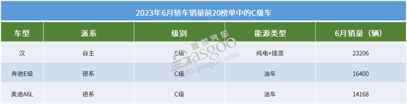 6月登榜轿车销量前20的C级车依旧是3款,而且车型也没有变,还是汉、奔驰E级和奥迪A6L。对奔驰和奥迪而言,持续扩大的终端优惠加上在高端市场上躬耕多年建立起来的品牌效应,都是其能够继续畅销的关键。