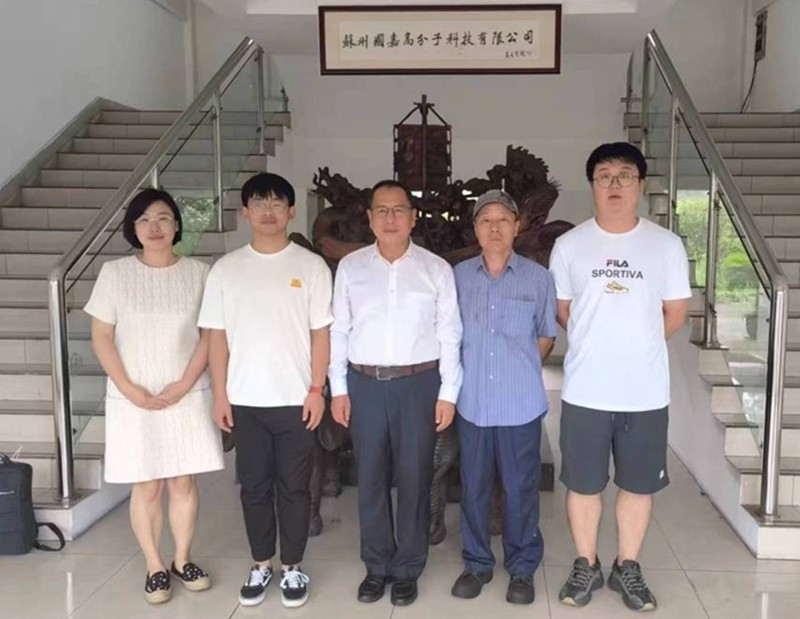 王占杰理事长一行在苏州国嘉高分子科技有限公司,与总经理王广民、副总经理郑洋、销售部经理许同辉进行座谈交流。