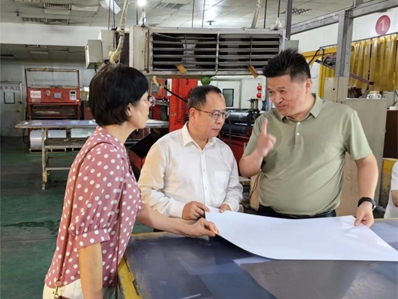 王占杰理事长详细了解了公司的原材料供应及产品销售情况,对公司努力研发、做精PC、PMMA及PO类的薄膜与片材高端市场表示赞赏,他还提醒公司注意在当前国际形势下更应寻求高性能原材料的国产化途径,扩大国内市场份额,做好预案、加强防范可能出现的卡脖子问题。协会愿搭建平台,帮助联络、沟通相关原料、技术事宜,助力企业的可持续发展与技术进步。