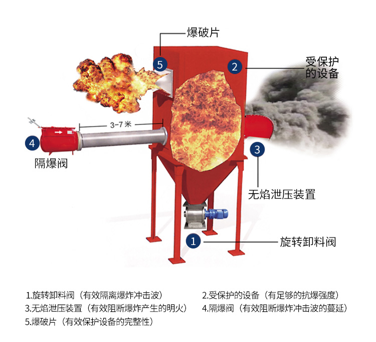 适用粉尘:Kst小于等于300barg*m/s的St1和St2的粉尘;