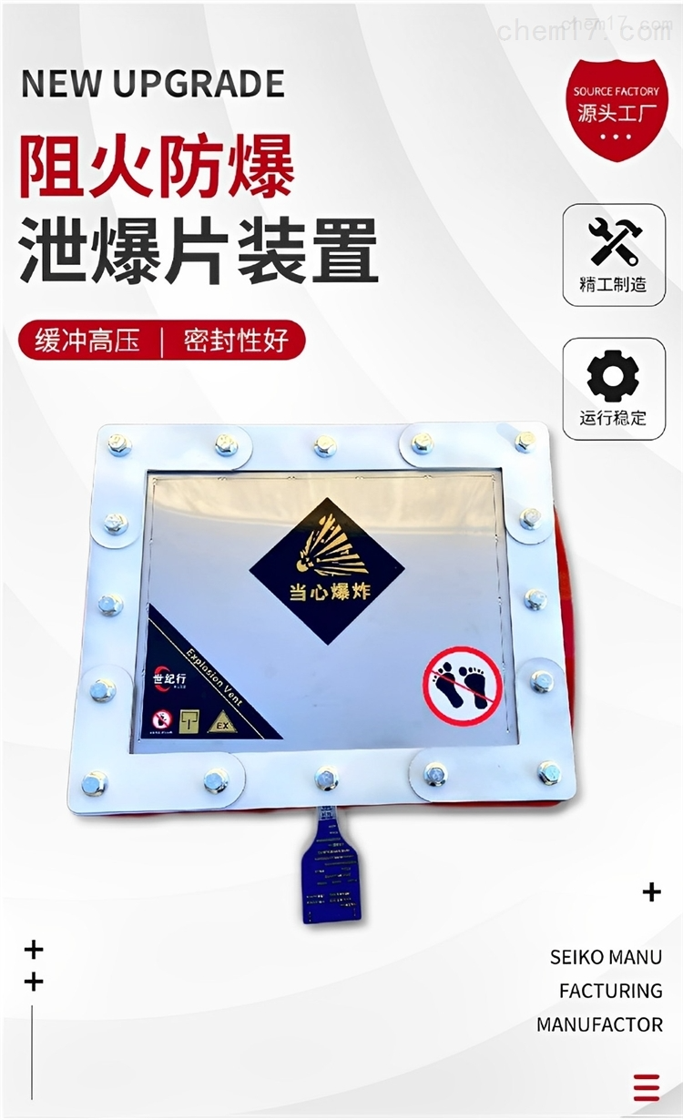 粉尘泄爆片适用于泄爆粉尘领域,在设备内部发生爆炸超压时及时释放压力,降低爆炸危害程度的一种安全泄压装置。