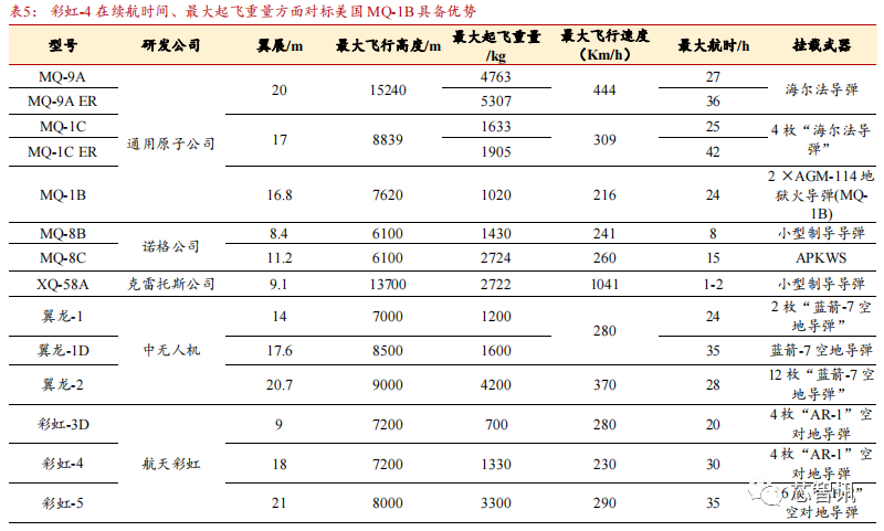 △资料来源《美军大中型察打一体无人机发展特点及趋势》、《中美无人机对比及其启示》、维基百科、航天彩虹、腾盾科创、浙商证券研究所